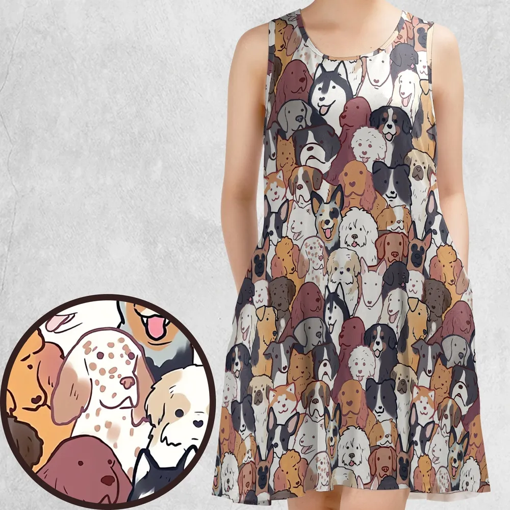 Cute Dogs Casual Sleeveless Dress
