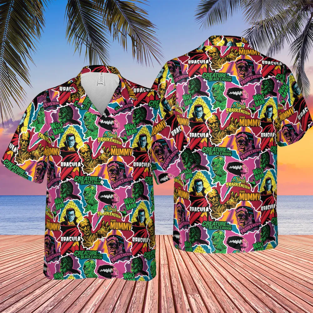 Monsters Pop Collage Universal Monsters Hawaiian Shirt